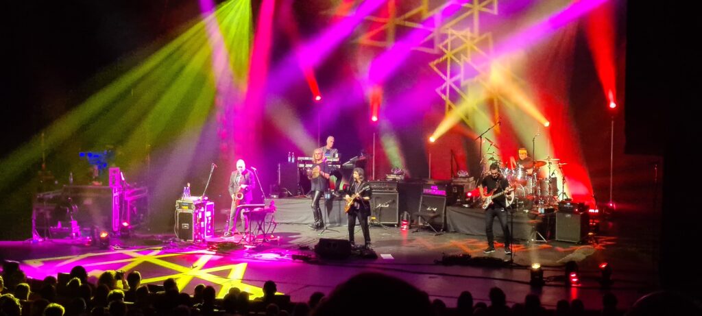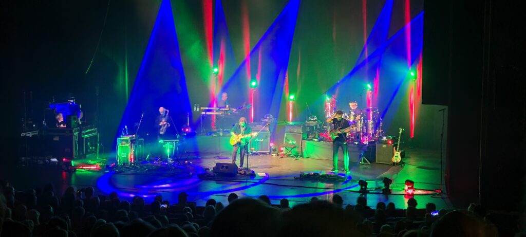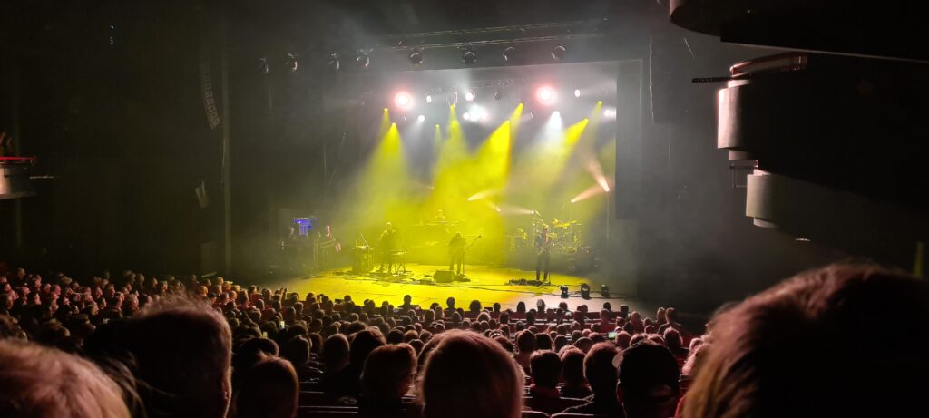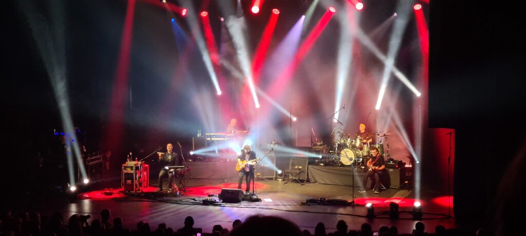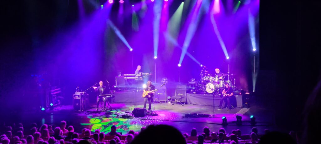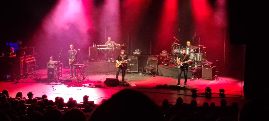 Das Konzert begann pünktlich und in der ersten Stunde wurden Stücke aus Hacketts aktuellem und sehr gutem Album „The Circus And The Nightwhale“ und seiner langen (und umfangreichen) Solokarriere gespielt. Alles schön proggig und mit Jazz-Rock-Einflüssen.