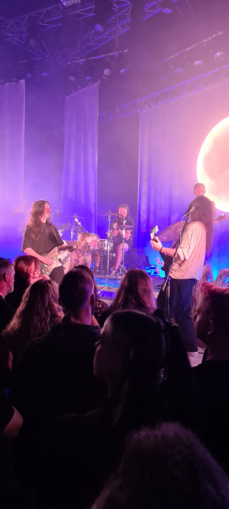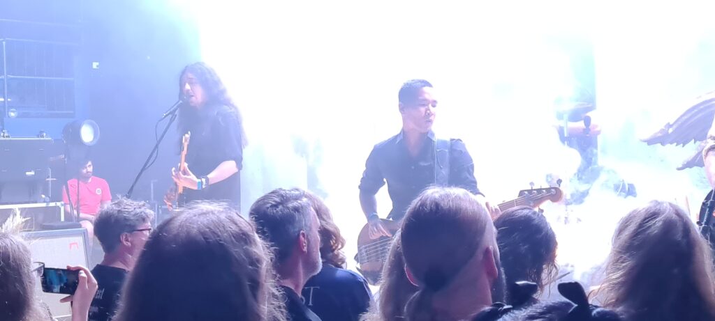 Leider hatte ich a) meinen Gehörschutz Zuhause liegen lassen (wobei mir später ein Zuschauer zwei Stöpsel schenkte – Danke dafür!) und b) stand wohl an einer unglücklichen Stelle. Denn die Abmischung war anfangs für mich gruselig. Da hörte ich nur das Schlagzeug und die Gitarren versanken in einem einzigen Brei. Das wurde dann aber später besser, und mir wurde erzählt, dass das anderswo überhaupt nicht so war.