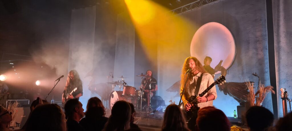 Ein Mann allein mit Gitarre, Stimme und Technik. Ist bei Discogs unter Doom Metal und Folk eingeordnet. Ich muss sagen, solch ein intensives Erlebnis hatte ich lange nicht mehr. Wie er da auf der Bühne seine seelischen Schmerzen raus ließ und mit seinen inneren Dämonen rang, begleitet von einem nach Erlösung flehenden Sound, das drang bis tief in die eigene Seele ein. Dazwischen gab es humorig-sympathische Ansagen, die er – wie er sagte – braucht, um es durch die Finsternis seiner Songs zu schaffen.