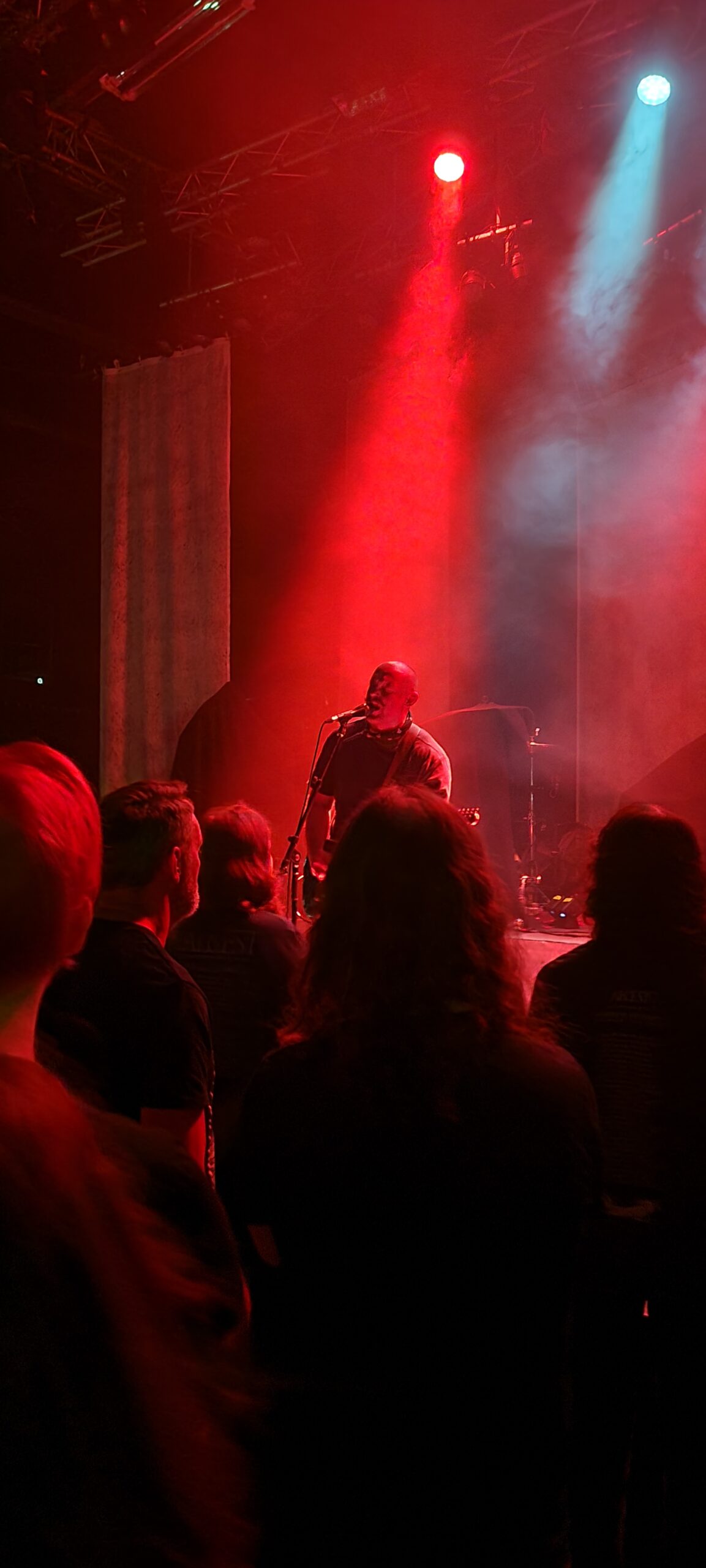 Ein Mann allein mit Gitarre, Stimme und Technik. Ist bei Discogs unter Doom Metal und Folk eingeordnet. Ich muss sagen, solch ein intensives Erlebnis hatte ich lange nicht mehr. Wie er da auf der Bühne seine seelischen Schmerzen raus ließ und mit seinen inneren Dämonen rang, begleitet von einem nach Erlösung flehenden Sound, das drang bis tief in die eigene Seele ein. Dazwischen gab es humorig-sympathische Ansagen, die er – wie er sagte – braucht, um es durch die Finsternis seiner Songs zu schaffen.