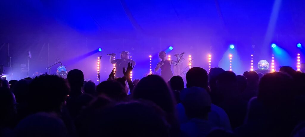 Gegeben wurden all killers, no fillers. Laturb habe ich das erste Mal 2021 beim WD*42-Festival am Hansator gesehen. Derselben Veranstaltung übrigens, auf der ich auch erstmals Shirley Holmes sah. Damals schon hatte mich das Trio mit seiner grandiosen Bühnen-Performance und dem melodiös rockendem Electrobeat-Sound mit coolen Texten schwer begeistert.