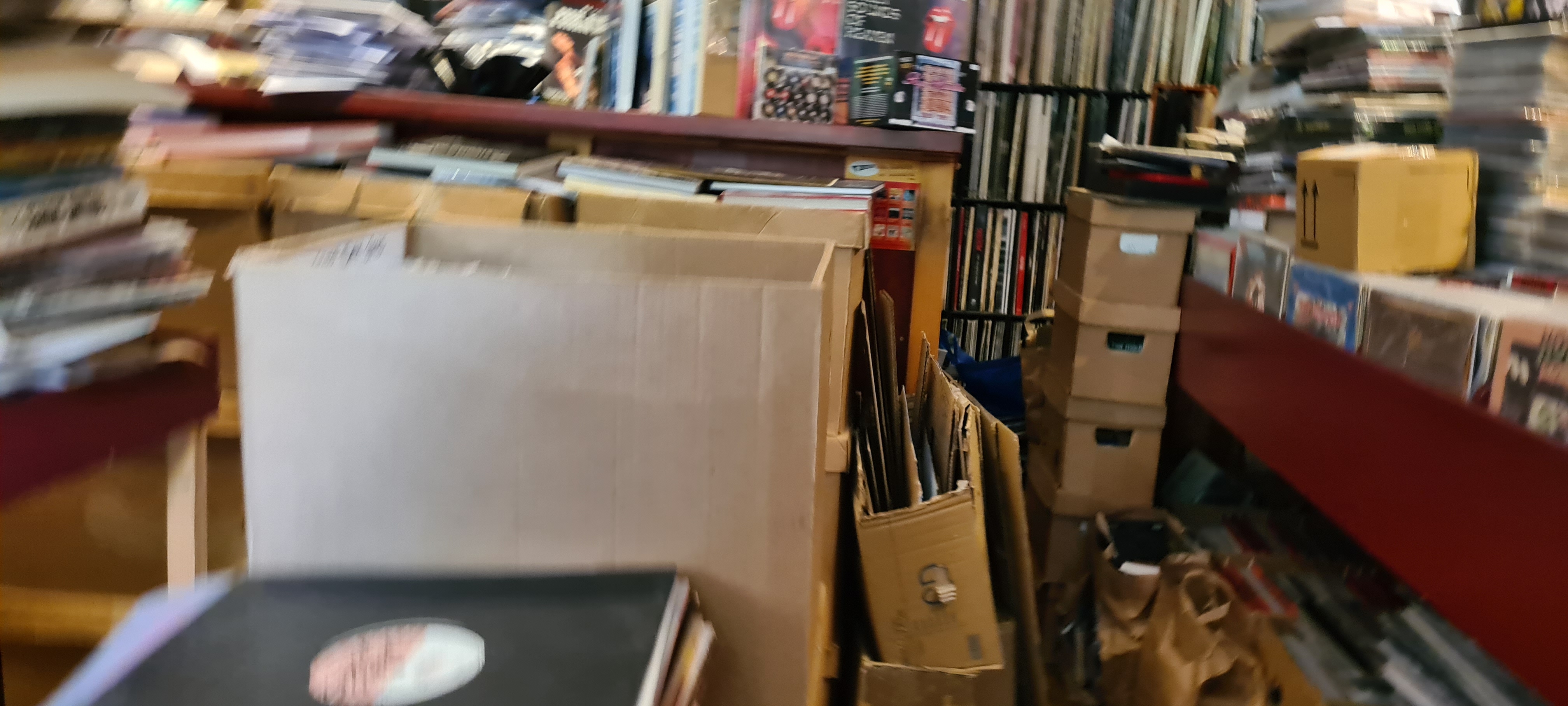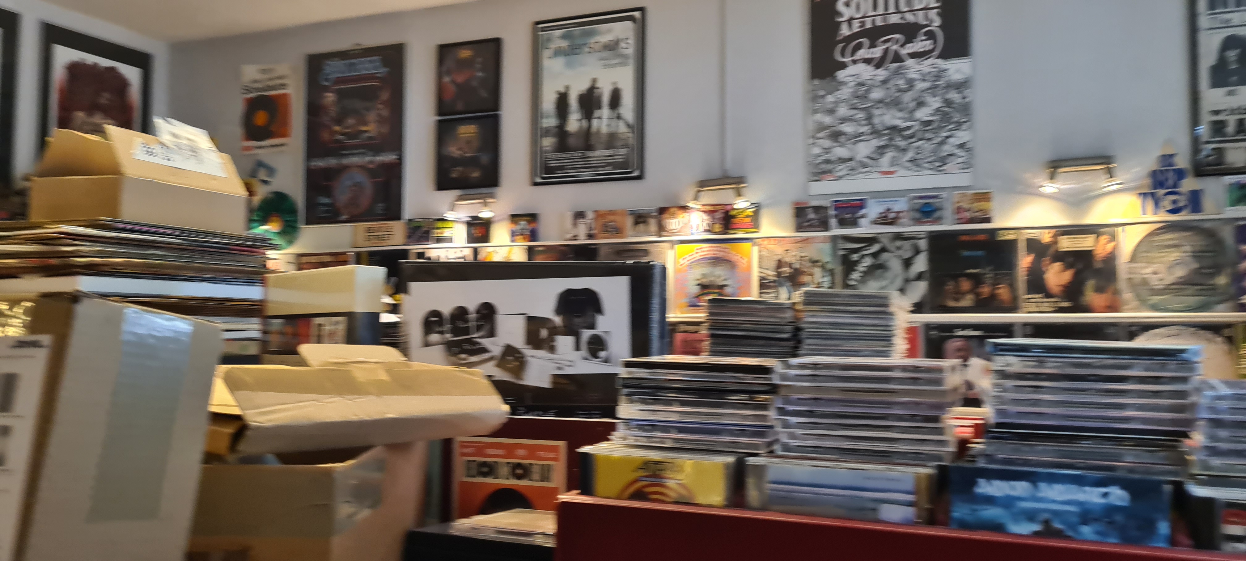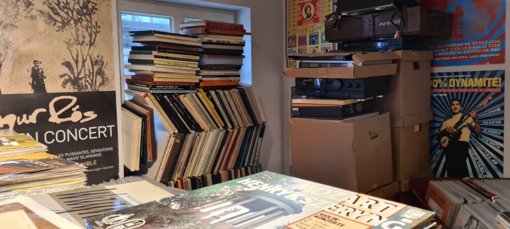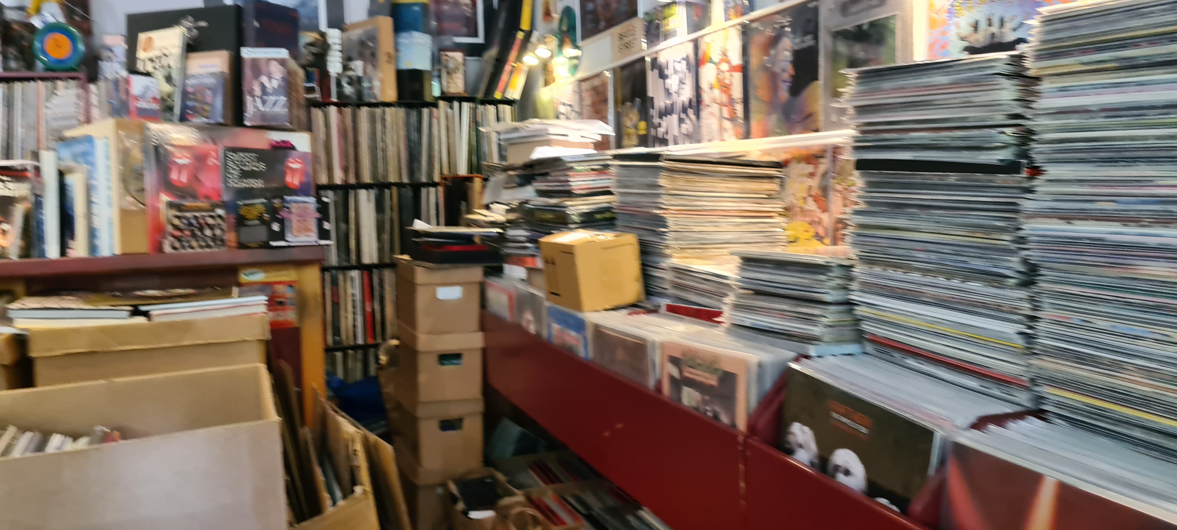 Silverspeed Records ist ein Laden, den man einmal gesehen haben muss. Ein solches Chaos ist mir in meiner „Vinyl-Shopping-Karriere“ noch nie untergekommen. Und ich meine das gar nicht negativ. Das verleiht der Räumlichkeit schon einenen ganz uniquen Charme und Persönlichkeit. Da lagen riesige Plattenstapel auf den Plattenkisten, weshalb man erst einmal einiges wegräumen musste, um in den Kisten Blättern zu können. Irgendwann bemerkte ich, dass unter den Tischen mit Kisten auch noch weitere Kiste reingestopft waren. Überhaupt, wo man hinblickt: Berge und Berge von Platten. Das macht es natürlich schwer, sich zu orientieren und gernell etwas zu finden, wenn man nicht viel Zeit hat. Man sollte diese also auf jeden Fall mitbringen.