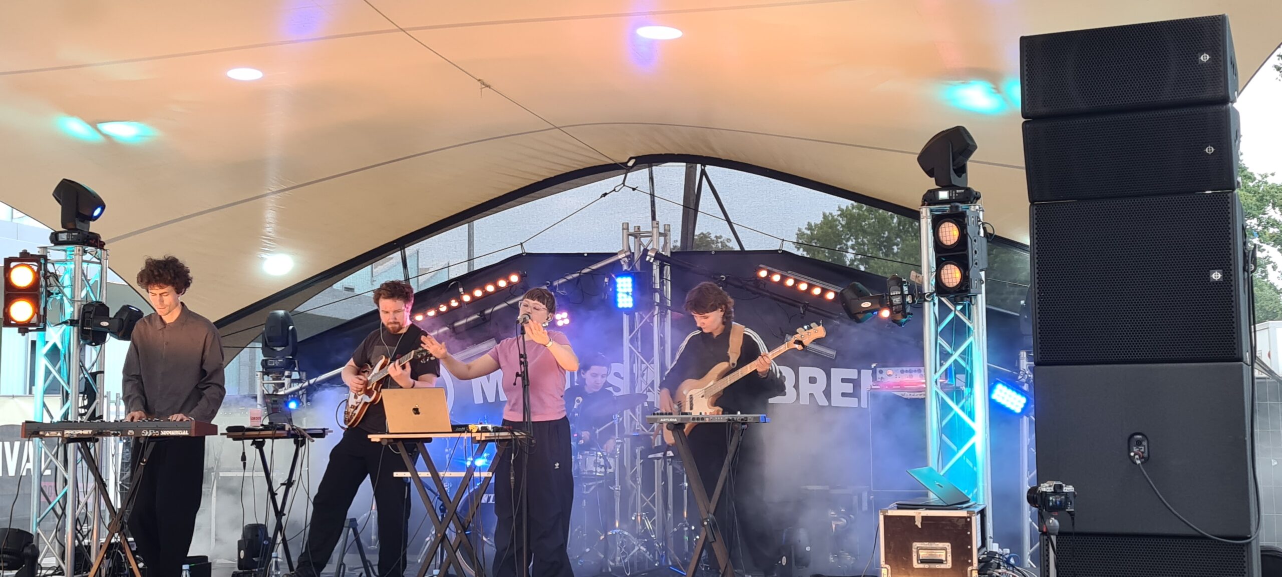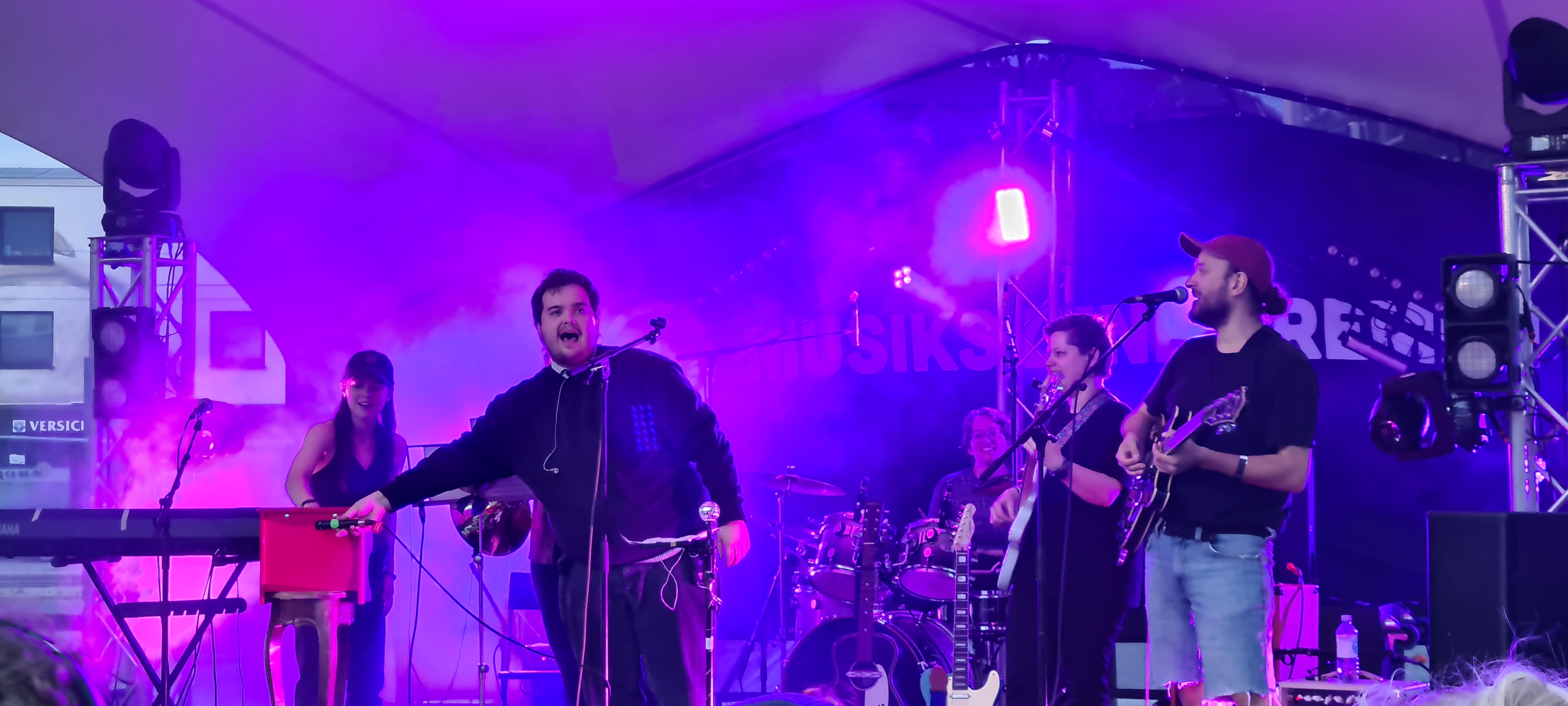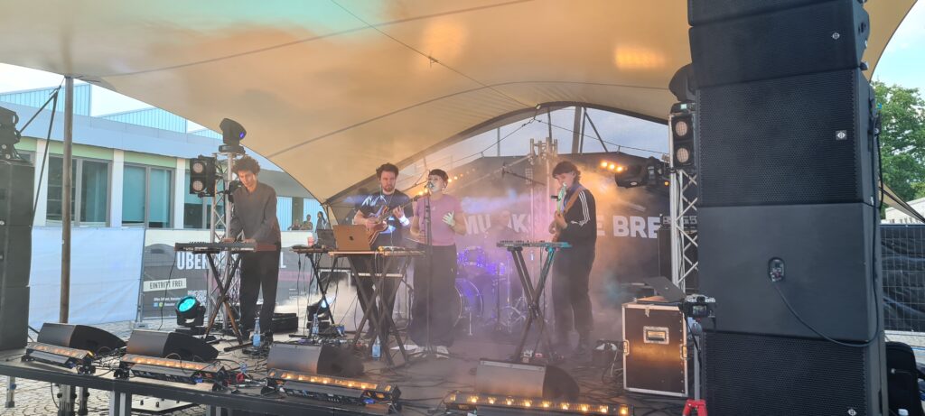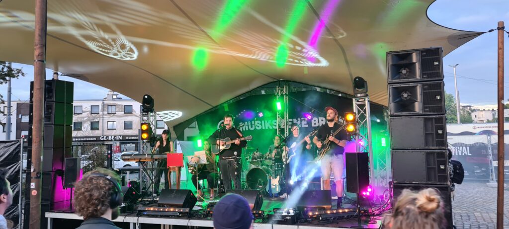 Der Schlagzeuger machte den Eindruck, er wolle sein Kit zertrümmert, was für einen fetten Groove sorgte. Und der Sänger und offensichtlich Bandleader kam mir sehr bekannt vor – und tatsächlich kannte ich ihn. Und zwar aus der Band Brendelso, die schon mal bei uns in der Helga aufgetreten war – und wo er mir schon als charismatischer Bassist aufgefallen war. Insgesamt radiotauglicher Rock von der guten Sorte und ein toller Auftakt.