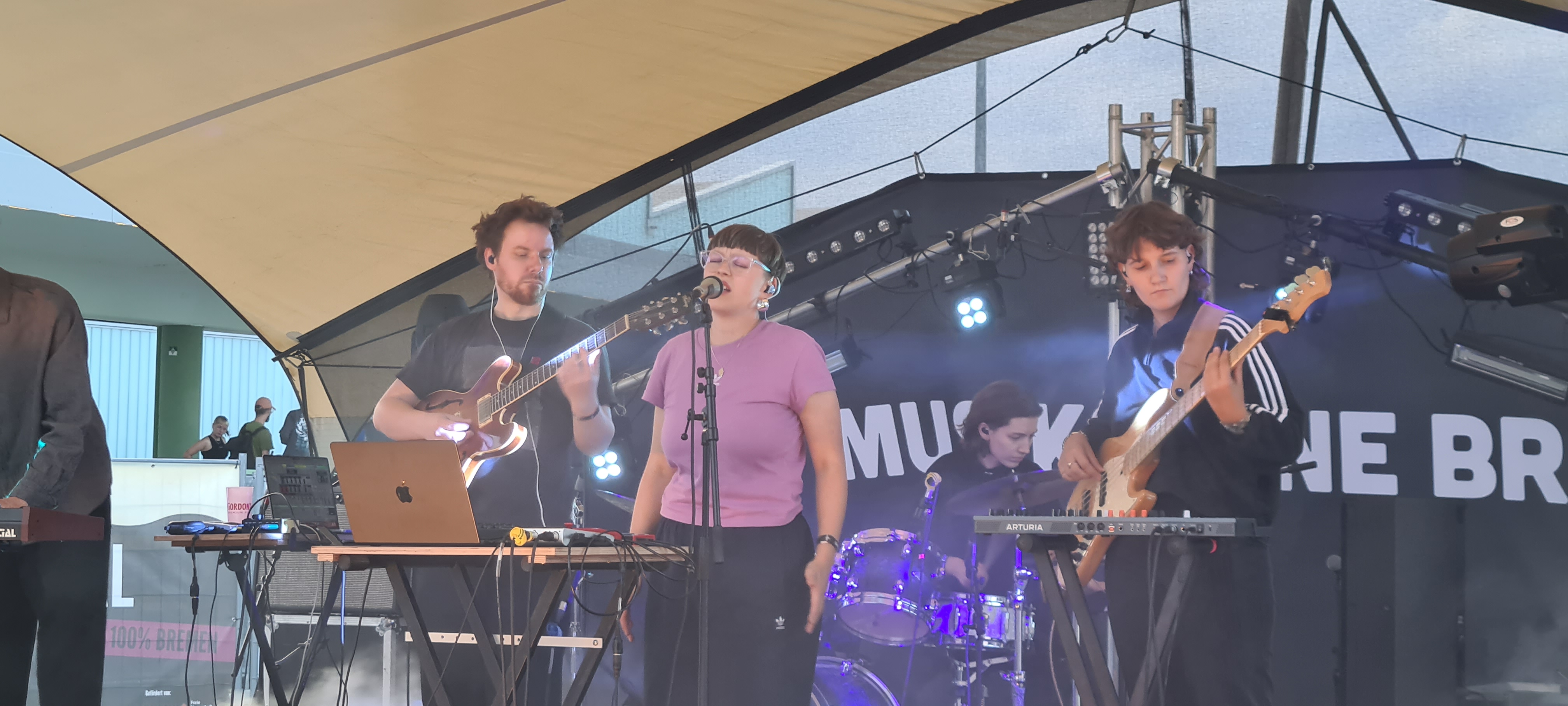 ULTRA POWER NAP waren eine Band zum Knuddeln. Sie hatten sich auf dem letztjährigen Shortbandcontest zusammengefunden, und diesen dann auch noch gewonnen. Und der Gewinn war dann dieser Slot auf dem Überseefestival. Gespielt wird schöner, einfacher Folk-Indie-Rock mit Keyboard und Horn. Der Funk sprang über und ebenso die gute Laune. Toll.