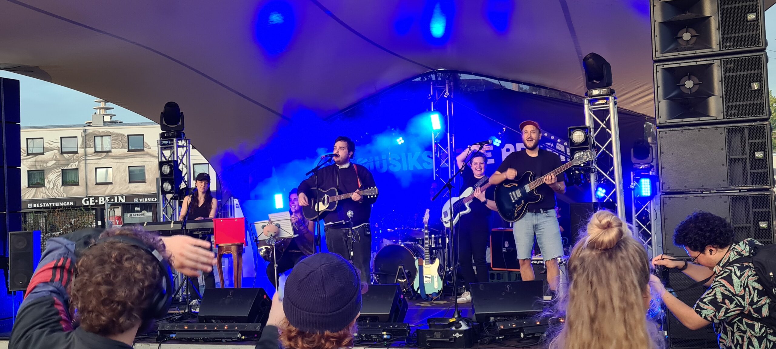 Der Schlagzeuger machte den Eindruck, er wolle sein Kit zertrümmert, was für einen fetten Groove sorgte. Und der Sänger und offensichtlich Bandleader kam mir sehr bekannt vor – und tatsächlich kannte ich ihn. Und zwar aus der Band Brendelso, die schon mal bei uns in der Helga aufgetreten war – und wo er mir schon als charismatischer Bassist aufgefallen war. Insgesamt radiotauglicher Rock von der guten Sorte und ein toller Auftakt.