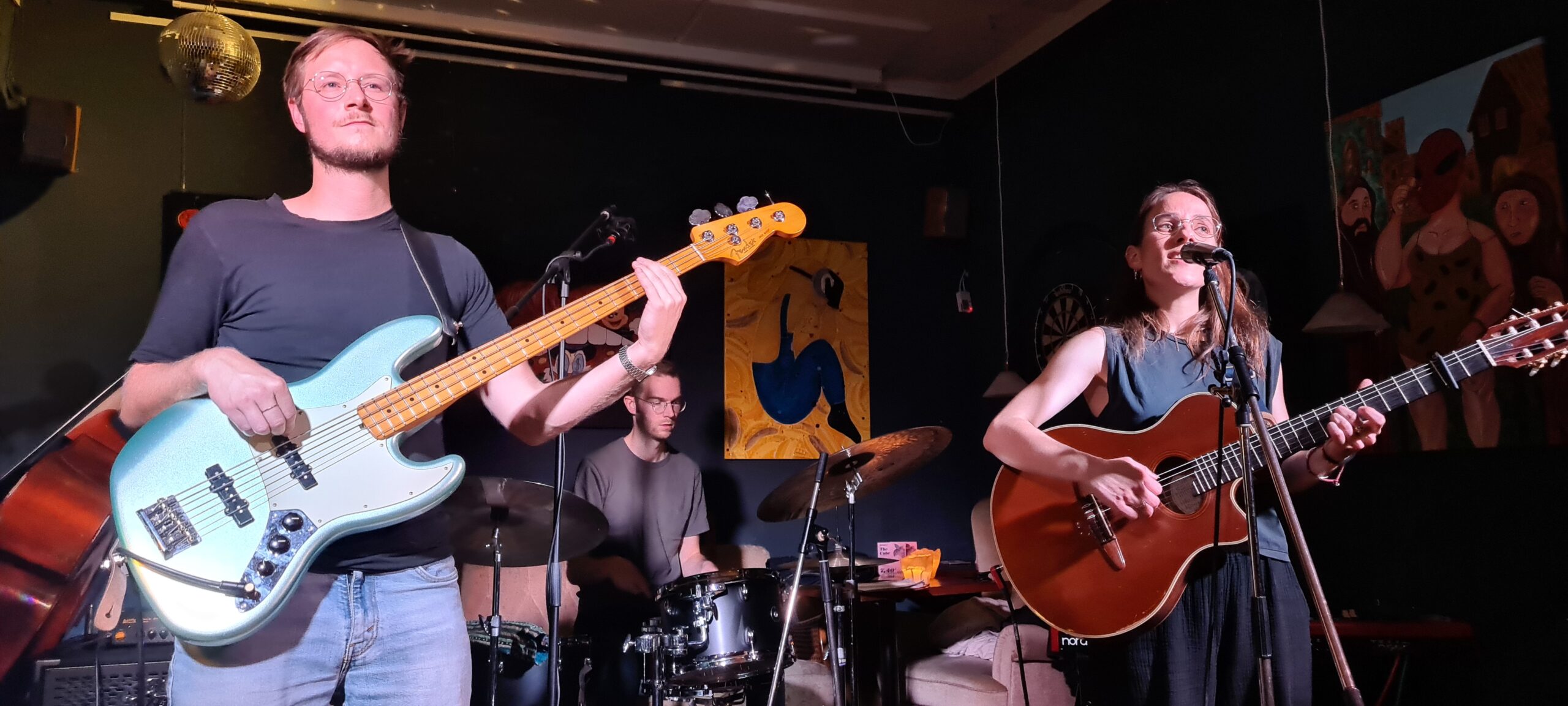 Die Stimme der tollen Sängerin und Songschreiberin Nia Wohlgemuth erinnerte mich in einigen Passagen manchmal ein wenig an Alannis Morrisette. Am E-Bass, wie auch am Stand-Up-Bass ein alter Bekannter der Bremer Musikszene: Jakob Fraisse von den Lokalmatadoren und Russki-Surf-Erfindern Vladi Wostock.
