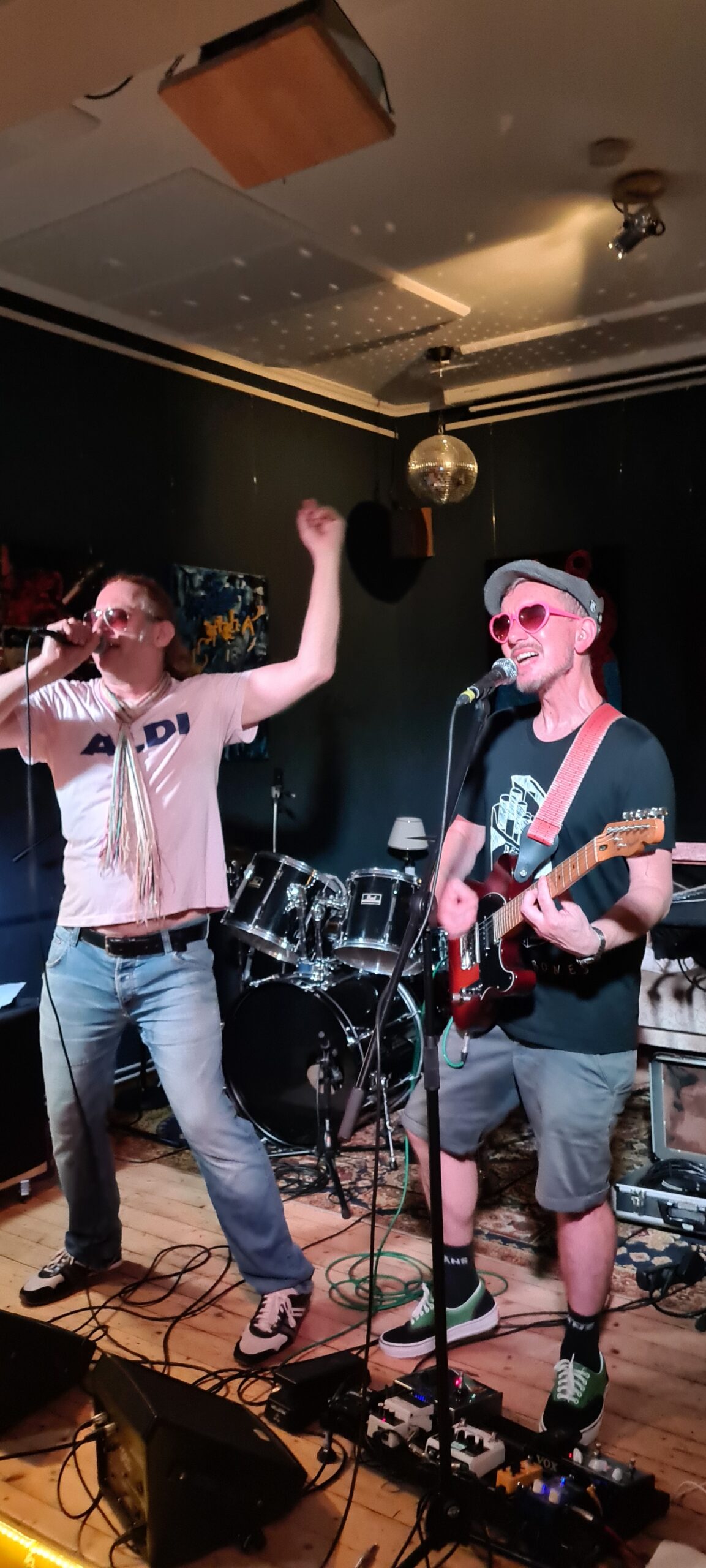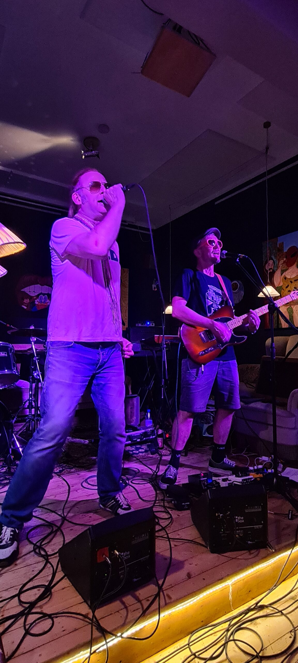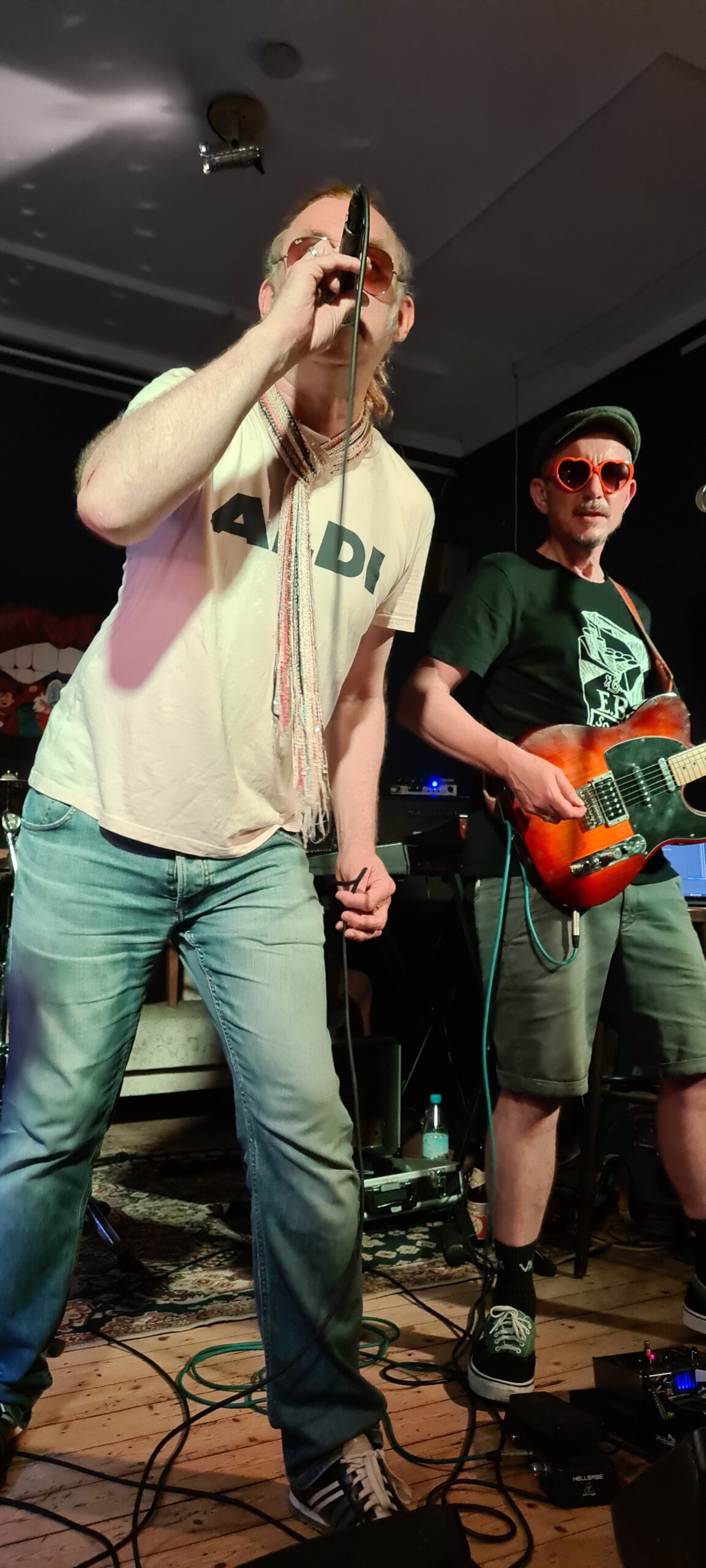 Das ergibt einen sofort ins Ohr und in die Beine gehenden Sound mit lauthals mitsingbaren Texte. Dazu kommt die Rampensau-Qualitäten von Bernie, die eine super Stimmung verbreiten. Kongenial dazu der eher ruhige The Jörgi an der Gitarre. Einfach Wunderbar!