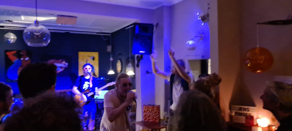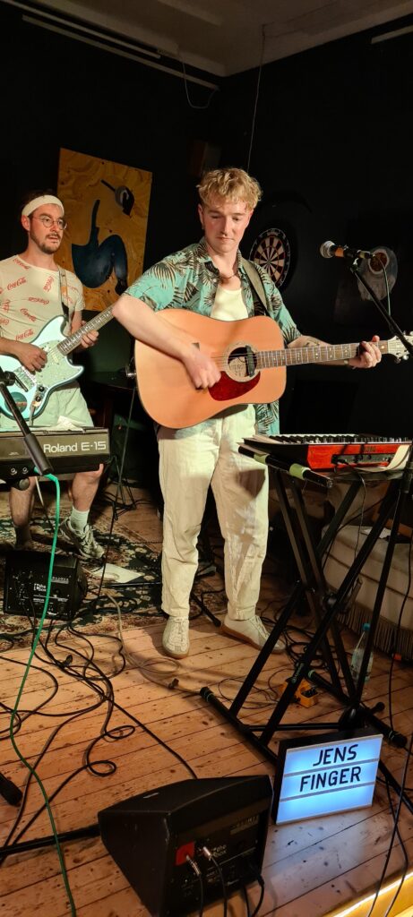 Danach Aufritt Jens Finger. Eine junge Band, ebenfalls aus Bremen. Der Traum es in der tat war, einmal mit The Bernie and the Jörgi aufzutreten. Hier werden Wünsche erfüllt! Jens Finger spielen sehr coole Musik, die ich in den frühen (als guten) Jahren der NDW verorten würde. Also als noch der alte Punk im frühen Wave zu spüren war.
